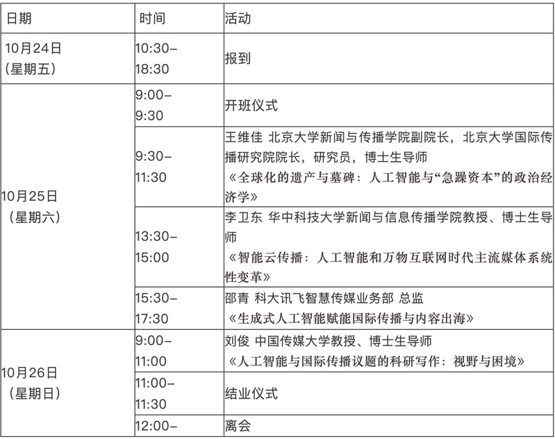 3. 培训对象:新闻学、传播学、出版学、舆论学和国际传播等信息传播领域的教师、博士后、在读博士研究生。