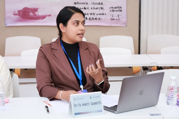 分论坛下半场由 “发展中国家国际传播硕士”项目实践教学协调员、信息传播学院讲师闫行健博士主持。尼日利亚留学生李思然(Nwekeorji Juliet Ebele)聚焦人工智能在语言教育中促进跨文化沟通的作用,指出与母语者实时互动是提升学习效果的关键,而AI语言应用也显著促进了全球互联互通。斯里兰卡留学生甘甜(Charitha Jeewanthi Gangewaththa)聚焦斯里兰卡传统舞蹈的数字化保存,发现社媒平台虽能提升全球可见度、促进传统文化教育与创新,但也带来本真性缺失、过度商业化及仪式意义消解等风险。来自暨南大学的苗欣然聚焦短视频平台的城市叙事,发现短视频生态中存在“双轨议程流动”:党政媒体影响商业媒体的议题显著性,而意见领袖则引导普通用户的发布模式。