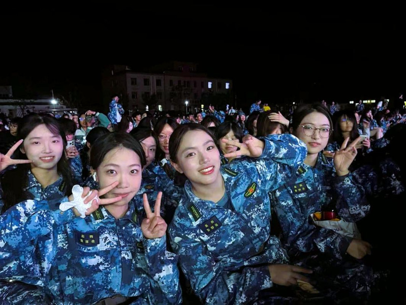 连队晚上的晚训是新生们学唱军歌和校歌的时间。不论是《强军战歌》中“国要强,我们就要担当”,还是《校园里有一排年轻的白杨》中的“珍惜春光”,都传递出新生们奋发向上、积极进取的青春力量。