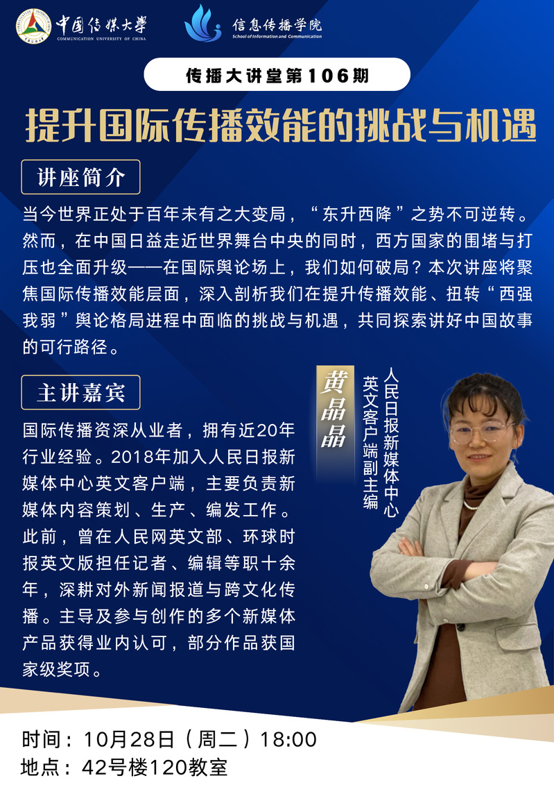 传播大讲堂第106期|提升国际传播效能的挑战与机遇