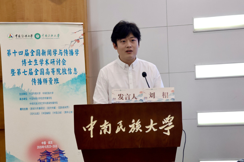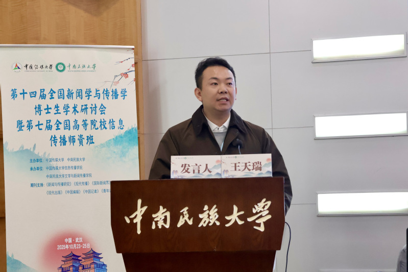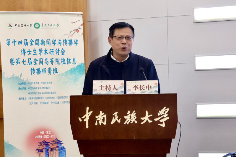 2025年10月23日至25日,由中国传媒大学与中南民族大学联合主办的第十四届全国新闻学与传播学博士生学术研讨会,在武汉南湖之滨的中南民族大学学术交流中心成功举办。本届研讨会汇聚了来自清华大学、复旦大学、国防科技大学、厦门大学等全国40余所高校的近两百名博士生、青年教师及学者,围绕“创新与自主:数智化背景下的信息传播”这一主题,展开了深度对话与思想碰撞。