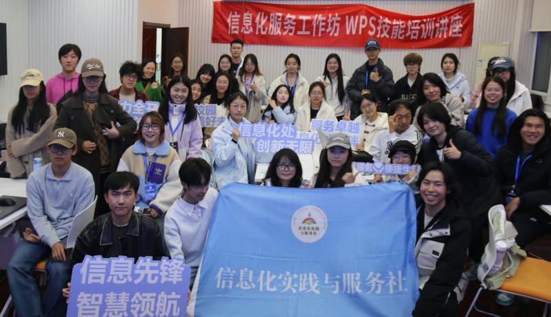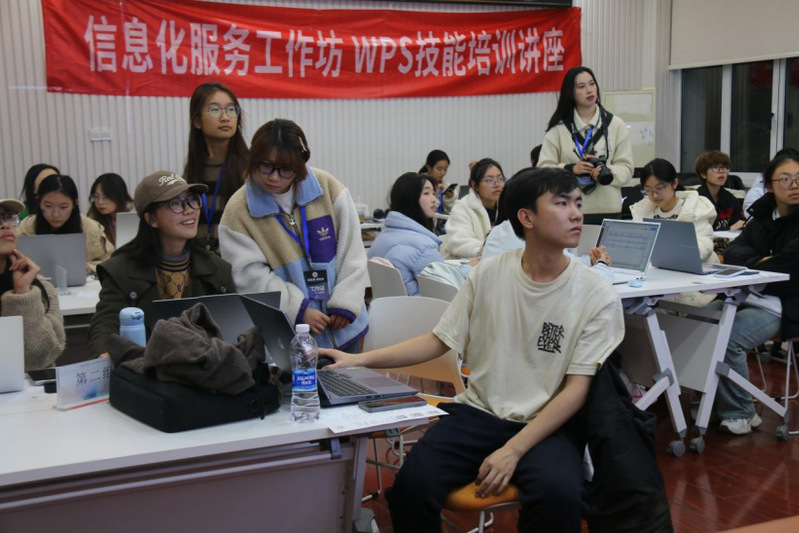 10月24日,信息传播学院邀请校信息化处为2025级本科生进行“信息化服务工作坊”WPS操作技能培训。学校信息化实践与服务社袁维松、马梓豪同学为现场同学讲解WPS核心功能。