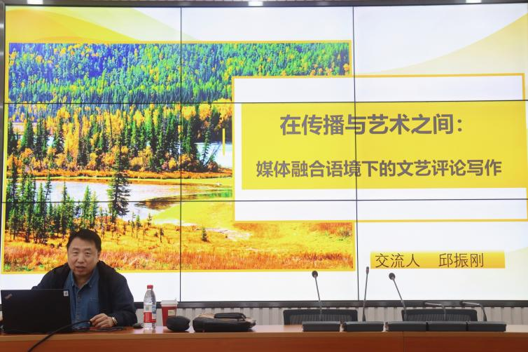 2025年10月22日下午,《中国艺术报》新闻部主任、作家、高级记者邱振刚在信息传播学院进行“媒体融合语境下的文艺评论写作”主题讲座。信息传播学院副研究员龚伟亮主持讲座。