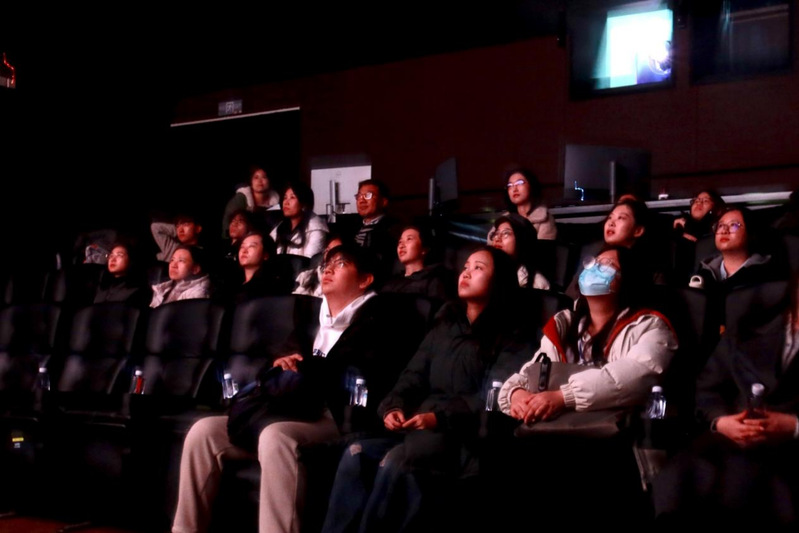 师生观看天工异彩介绍短片
