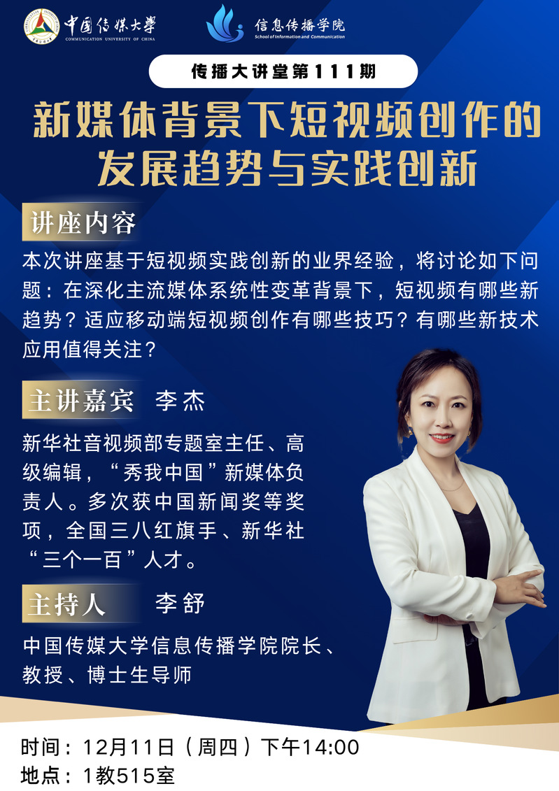 传播大讲堂第111期|新媒体背景下短视频创作的发展趋势与实践创新