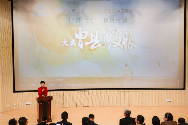 专题讲座环节,中国传媒大学戏剧影视学院张玲教授围绕汉服文化与现代传承进行交流分享,探讨了中华传统服饰文化的历史意义及其在当代的创新的文化路径,提出了对于中华服饰文化传承与现代创新探索的思考。