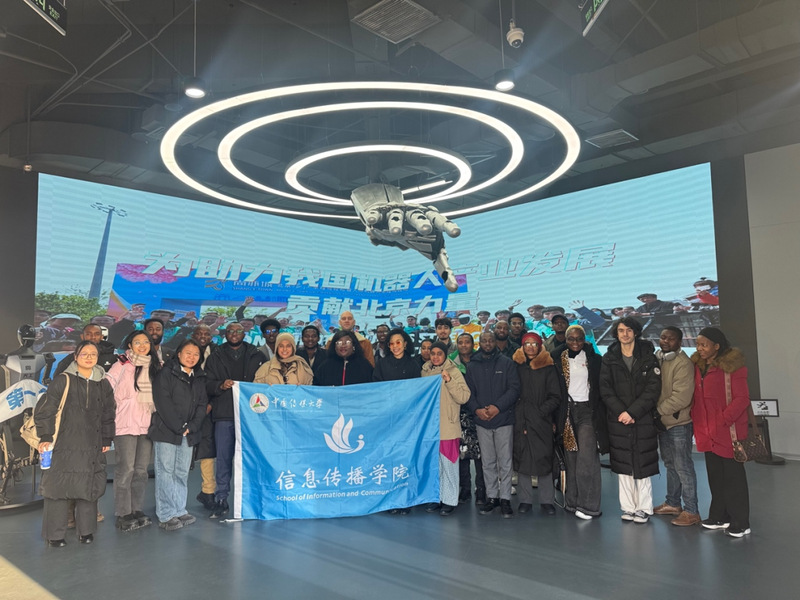 12月17日,由康秋洁副教授和赵竞鹤老师带队,信息传播学院组织硕博士留学生赴中关村(亦庄)国际机器人产业园调研,开展“以机器人为径,见中国科技发展之光”主题研习活动。来自葡萄牙、卢森堡、洪都拉斯、阿尔及利亚、尼日利亚、津巴布韦、埃塞俄比亚、索马里、马拉维等13个国家的25位硕博留学生参与活动。
